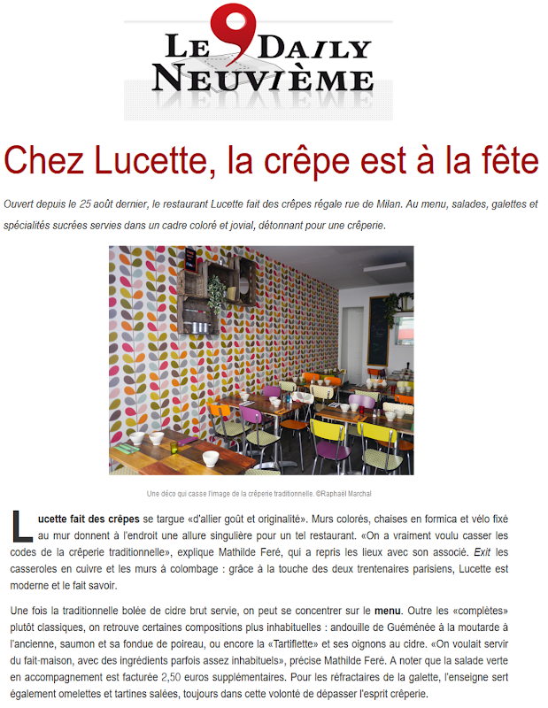 Dans un décor vintage et chaleureux, Lucette vous régale de galettes, crêpes et omelettes maison. Une cuisine authentique entre tradition et modernité, à accompagner d’un cidre, d’une bière, d’un verre de vin ou d’une bolée de jus de pomme artisanal.